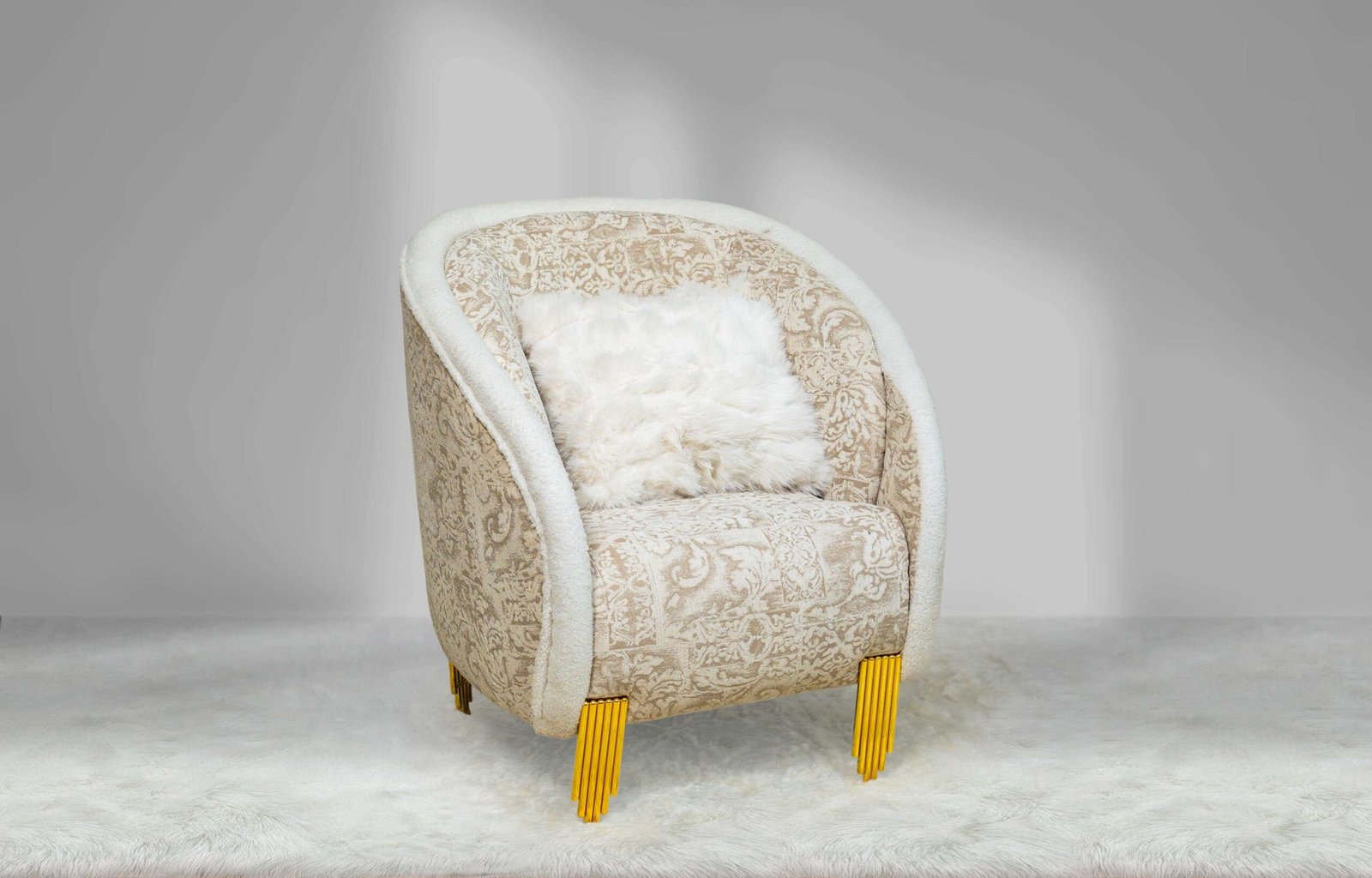 Premium Accent chair set made with high quality fabric and gold leg accessories.