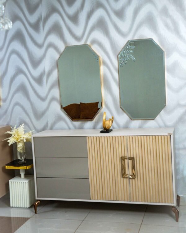 Modern Table console with mirror set made with high-end wood ,gold accessory and brass legs