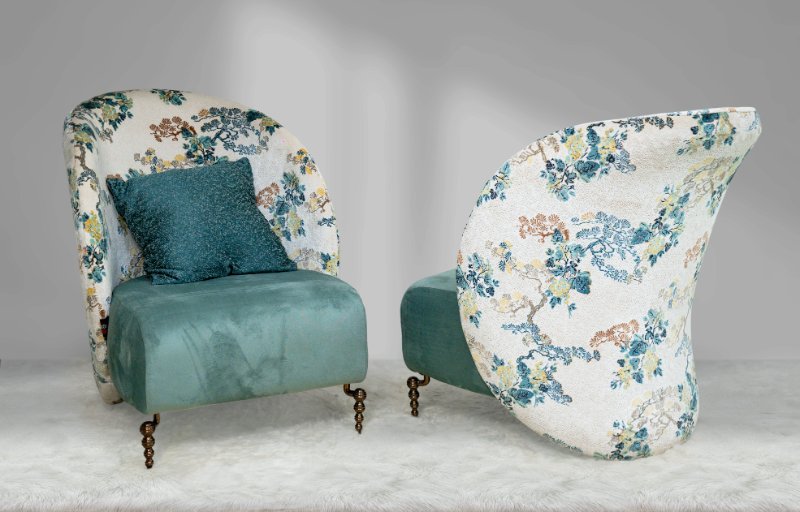 Premium Accent sofa set made with soft quality fabric and bronze leg accessories.