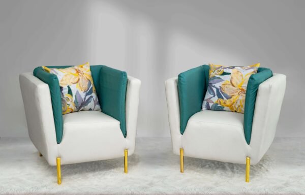 Sleek Modern Accent sofa set made with high quality leather and gold leg accessories.